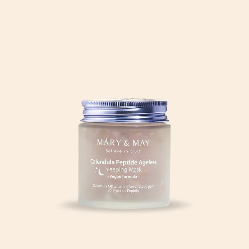 Maska Calendula Peptide Ageless Sleeping Mask to doskonały produkt do nocnej pielęgnacji przeciwstarzeniowej. Wegańska formuła odpowiednia dla każdego rodzaju skóry, szczególnie dojrzałej, zmęczonej i wymagającej intensywnej regeneracji, została wzbogacona o Guaiazulen – składnik pochodzący z rumianku, który nadaje produktowi charakterystyczny niebieski odcień i dodatkowe właściwości łagodzące.