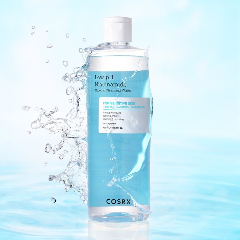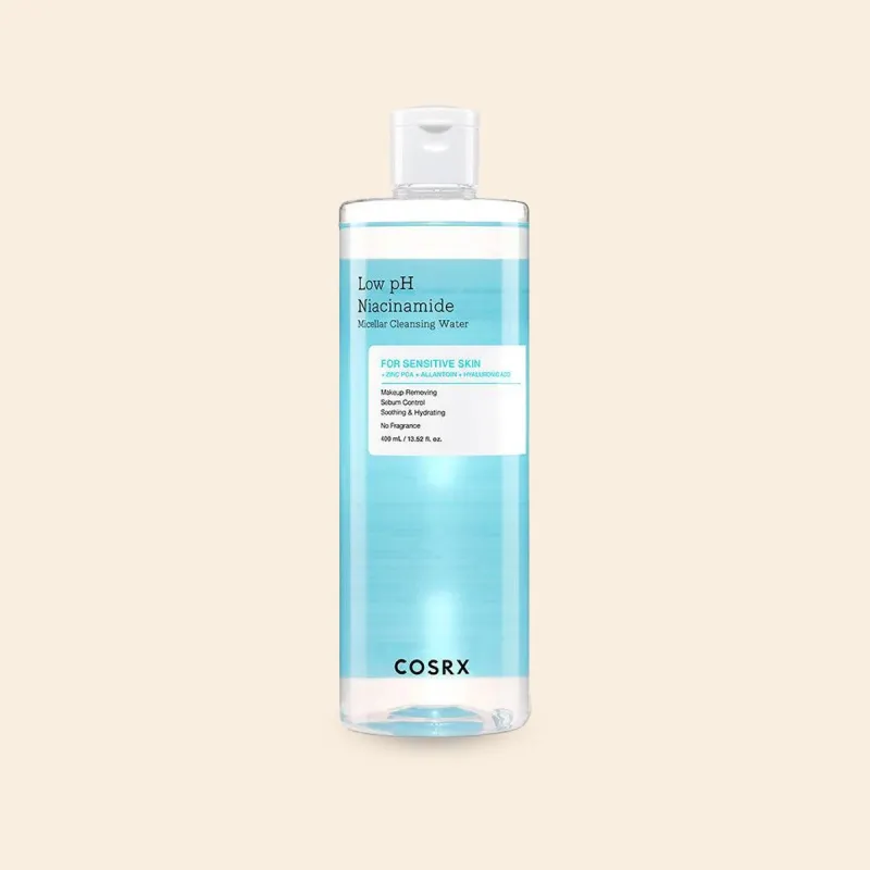 Innowacyjna woda micelarna marki COSRX to niezawodny pierwszy krok codziennej pielęgnacji, który łączy skuteczne oczyszczanie z delikatną pielęgnacją. Formuła o niskim pH utrzymuje naturalną równowagę skóry, nie naruszając jej bariery ochronnej. Dzięki zawartości niacynamidu i innych cennych składników aktywnych, kosmetyk nie tylko usuwa makijaż i zanieczyszczenia, ale także wspomaga regenerację i nawilżenie skóry już podczas oczyszczania.