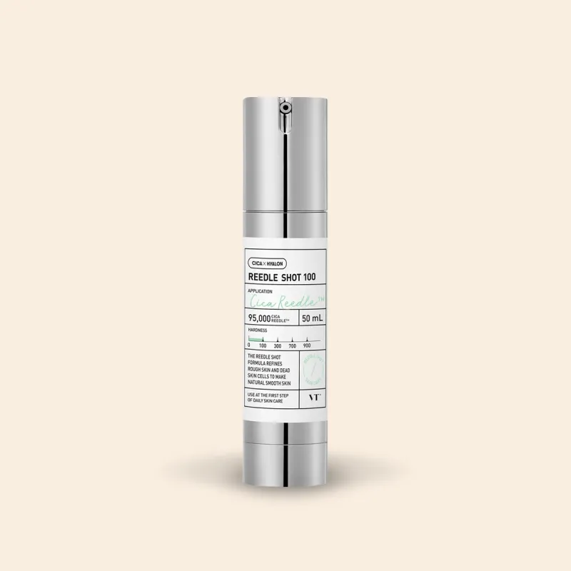 Odkryj VT Cosmetics Reedle Shot 100, innowacyjny booster do twarzy, który przygotowuje skórę do lepszego wchłaniania składników aktywnych. Wykorzystuje technologię Cica Reedle™ – mikrocząsteczki pochodzenia mineralnego, przypominające mikroigły, które są 14-krotnie mniejsze od porów skóry. Dzięki 16-krotnemu procesowi oczyszczania enzymami uzyskano 99% czystości mikroigieł, co zapewnia skuteczność i bezpieczeństwo stosowania w domu. Produkt powstał we współpracy z Oracle Dermatology Clinic w Seulu. Wspomaga naturalne procesy odnowy skóry, pomagając uzyskać gładszą i bardziej promienną cerę.